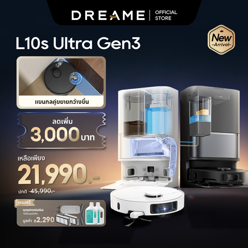 [ใหม่ล่าสุด] Dreame L10s Ultra Gen 3 25,000Pa แบต 5200mAh ทำงาน 231 นาที ถูพื้น ล้างผ้า อบแห้ง ควบคุมผ่านแอป