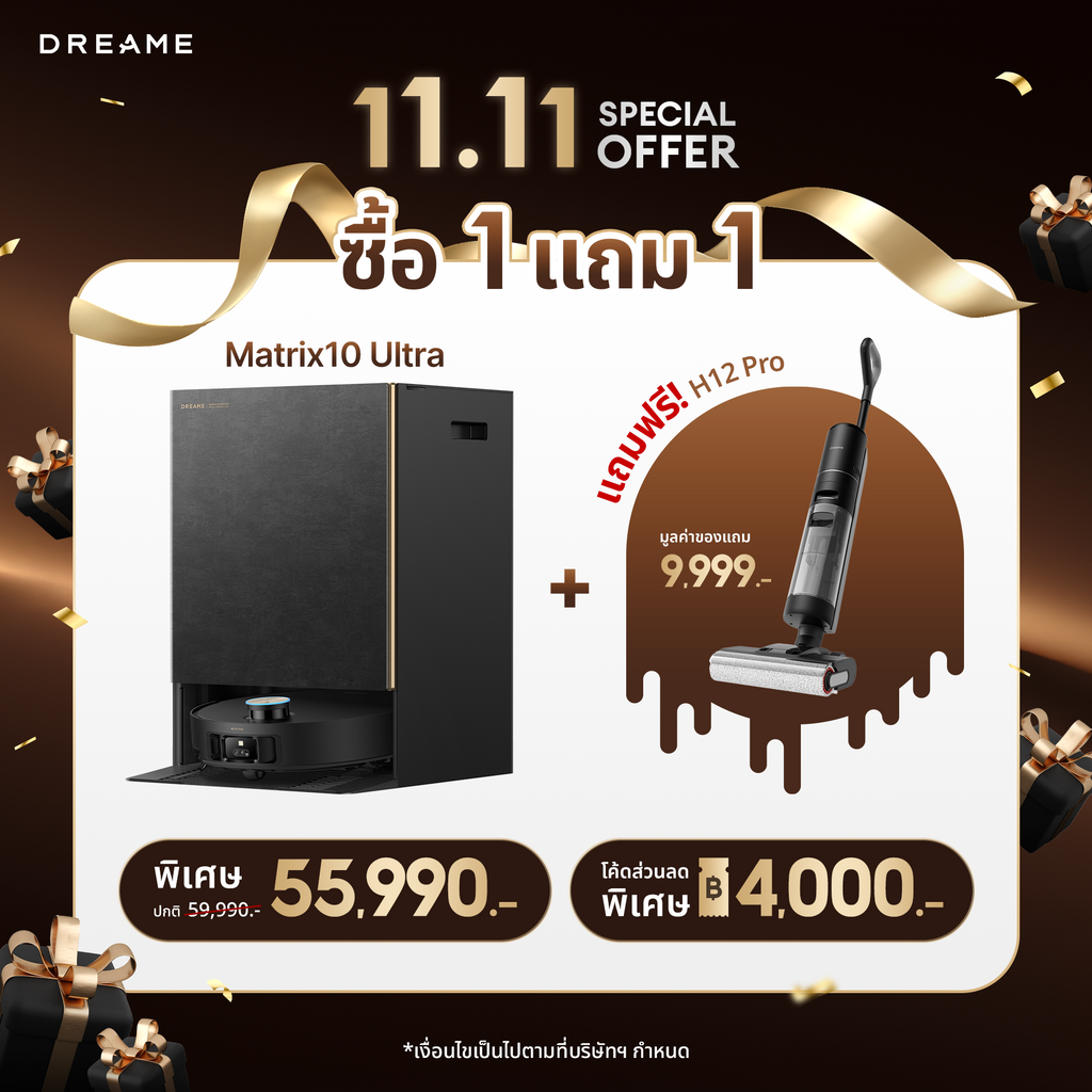 [NEW2025]Dreame Matrix10 Ultra Robot Vacuum and Mop ฟังก์ชันสลับหัวถูหลายแบบ แรงดูดสูงสุด30kPa ซักผ้าม็อปด้วยน้ำร้อน100℃