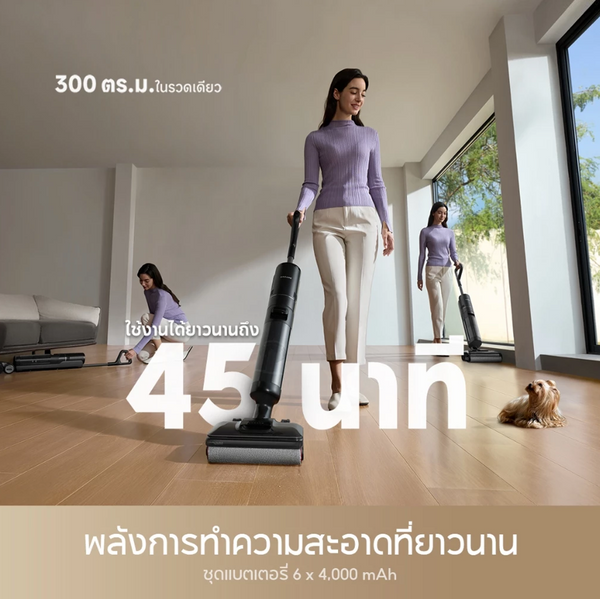สิ่งที่ทำให้ H12 FlexReach แตกต่างคือระบบ ดูดและถูพื้นพร้อมกัน (Wet & Dry Cleaning) ที่ช่วยจัดการทั้งฝุ่น แป้ง คราบน้ำ หรือเศษอาหารได้ในครั้งเดียว ไม่ต้องเสียเวลาผ่านหลายขั้นตอนอีกต่อไป เหมาะกับพื้นผิวหลากหลายประเภท ไม่ว่าจะเป็นพื้นไม้ กระเบื้อง หรือพื้นห้องครัวที่มักมีคราบเหนียว