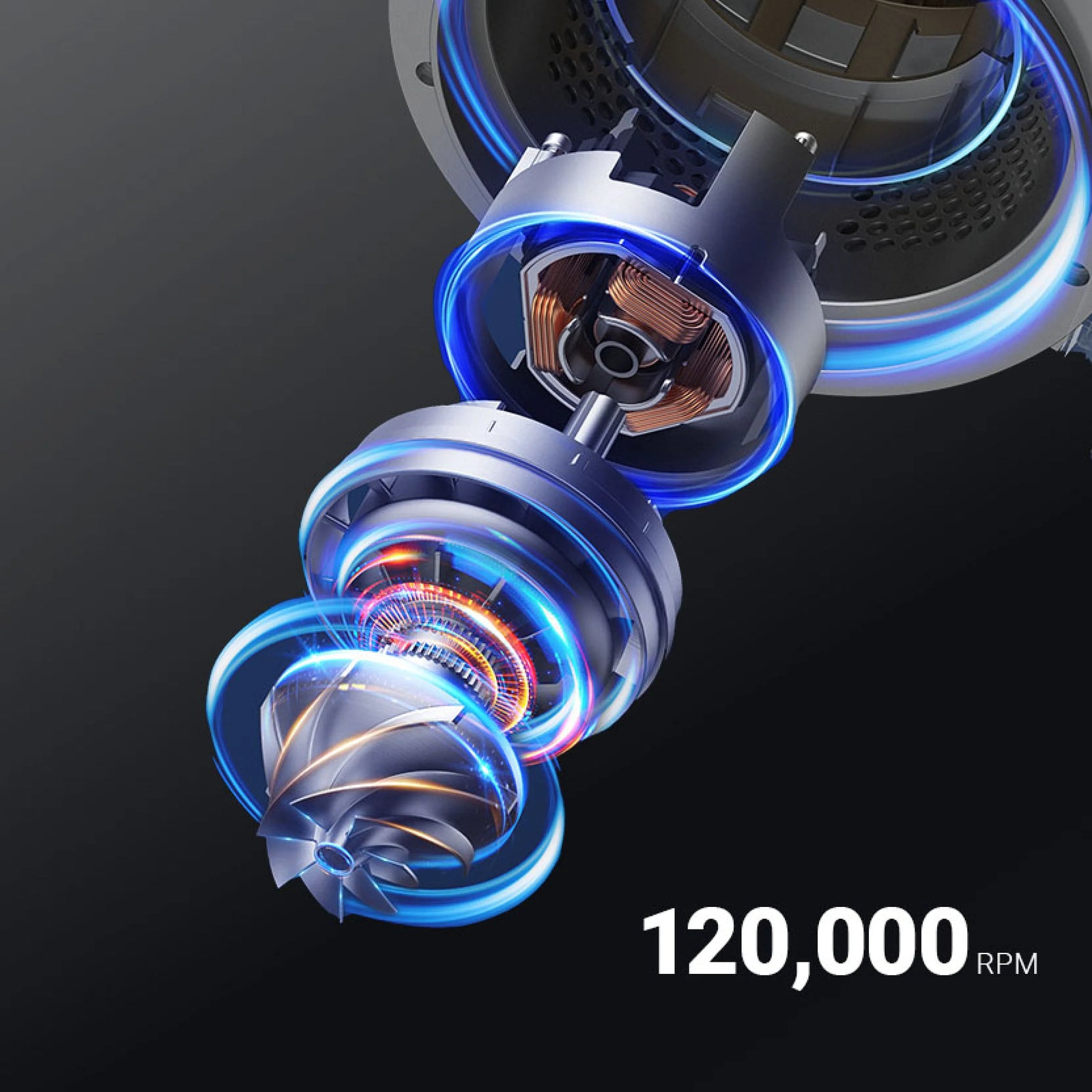 With 150 AW of suction power combined with a high-speed brushless motor of 120,000 rpm*, it delivers efficient removal of hair, dirt, dust and debris.
