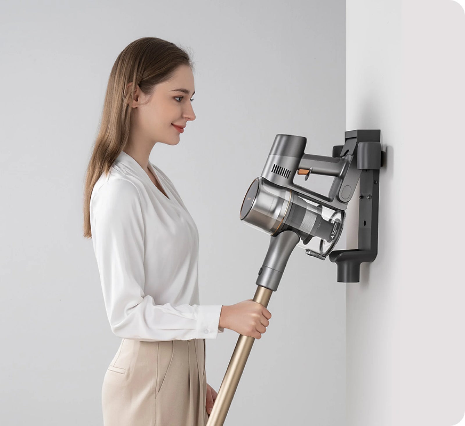 Wall-mounted storage makes it easy to access and store the vacuum cleaner and all accessories, taking up less space.