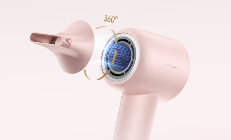 ไดร์เป่าผมความเร็วสูง Dreame Hair Gleam มาพร้อมการออกแบบท่อลมที่เป็นเอกลักษณ์และตัวปล่อยประจุไอออนลบที่ปล่อยประจุไอออนลบ 200 ล้านตัว*