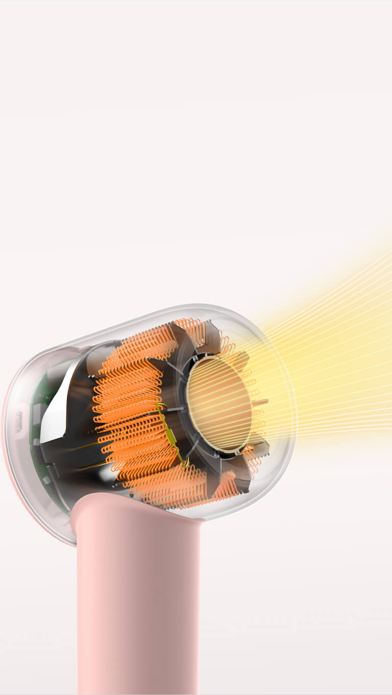 เครื่องเป่าผมความเร็วสูง Dreame Hair Gleam มอบความเร็วลมสูงสุด 65 ม./วินาที* และปริมาณลม 55 ม.³/ชม.** มอบกระแสลมแรงเพื่อการเป่าผมที่มีประสิทธิภาพ กระแสลมเข้าถึงรากผมโดยตรง ช่วยขจัดน้ำออกจากผิวผมอย่างอ่อนโยน สัมผัสประสบการณ์แห่งอิสระในการดูแลเส้นผมด้วยเวลาในการเป่าผมที่รวดเร็วเพียง 3 นาที