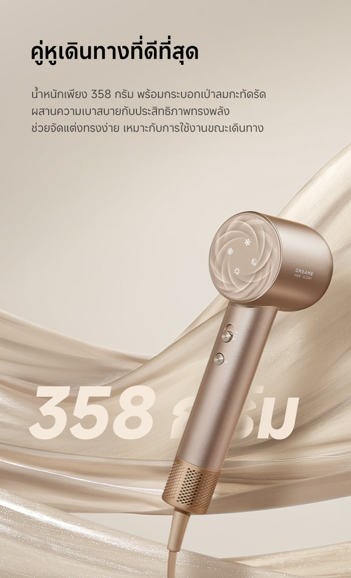 ![[NEW] Dreame Hair Glory Uni รองรับแรงดันไฟฟ้าทั่วโลก ไดร์เป่าผมความเร็วสูง เป่าแห้งไว ไอออนลบปกป้องเส้นผม - Dreame Thailand](http://th.dreametech.com/cdn/shop/files/Hair_Glory_Uni_004_{width}x.jpg?v=1756973220)