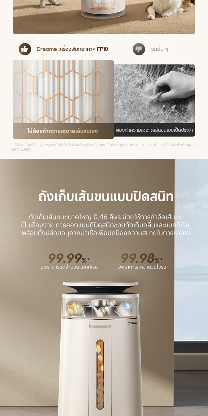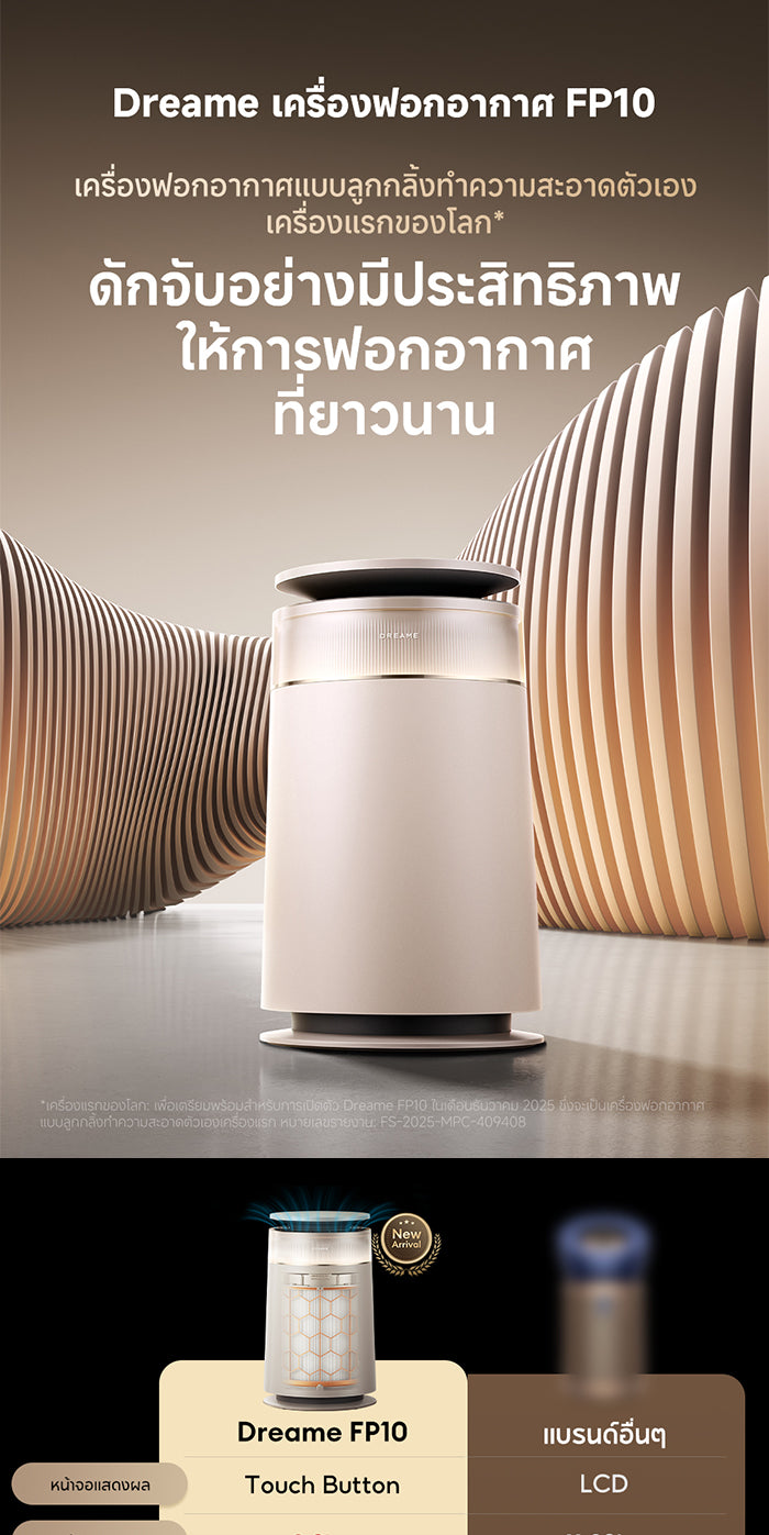![โหลดภาพลงในตัวดูแกลเลอรี, [พรีออเดอร์ 20 วัน] Dreame FP10 Pet Air Purifier | เครื่องฟอกอากาศ | ระบบทำความสะอาดตัวเอง | กำจัดขนสัตว์ | ฆ่าเชื้อ UVC | กรอง PM2.5 | กำจัดฟอร์มาลดีไฮด์ | ดับกลิ่นสองพลัง - Dreame Thailand](http://th.dreametech.com/cdn/shop/files/7-Tech-InspiredAestheticDesign_150x.jpg?v=1775639443)